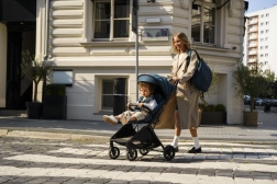 EVA kotači 6,5"/7" glatko savladavaju grad i park. U cijeni su ruksak, držač za piće, mreža protiv komaraca i navlaka za kišu; opcijski spajanje dvoje kolica.