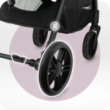 Široko sjedalo s podesivim naslonom za leđa i noge, peterostruki sigurnosni pojasevi i proširiva krošnja s ventilacijom. Roditelji će cijeniti visinski podesivu ručku i prostranu košaru.