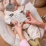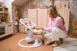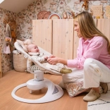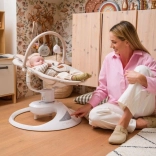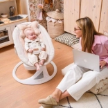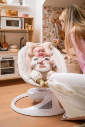 Ljuljačka MoMi PEARL spaja moderan dizajn, udobnost i pametne funkcije kako bi se vaše dijete mirno odmaralo, a vi imali slobodne ruke. Okretno sjedalo od 360° osigurava idealan položaj i kontakt s roditeljem, dok dva načina ljuljanja s pet brzina pomažu lako potaknuti opuštanje i san. Integrirani timer (8/15/30 min) štedi energiju i nudi praktičan automatski način rada.