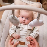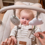 Zahvaljujući ugrađenim melodijama, zvukovima prirode i Bluetooth povezivanju, pustit ćete bebi sve od uspavanki do vaših omiljenih playlisti. Mekani materijali, odvojiva navlaka periva u perilici i sigurnosni pojas u 5 točaka brinu za udobnost i sigurnost. Prečka s dvjema igračkama potiče osjete i nudi nježnu zabavu tijekom odmora.