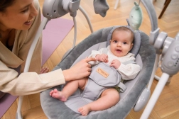 Mekano podstavljeno sjedalo, potpora za glavicu i 5-točkasti pojasevi sa širokim preponim remenom osiguravaju udobnost i sigurnost pri svakom ljuljanju.