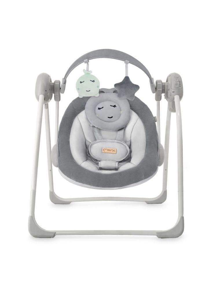 Električna ležaljka za ljuljanje MOMI Liss u elegantnoj sivoj boji umiruje i zabavlja bebu zahvaljujući 5 brzina ljuljanja, timeru i 6 melodija. Ima stabilnu sklopivu konstrukciju, mekano sjedalo s jastučićem i 5-točkaste pojaseve za sigurno i udobno korištenje kod kuće i na putu.