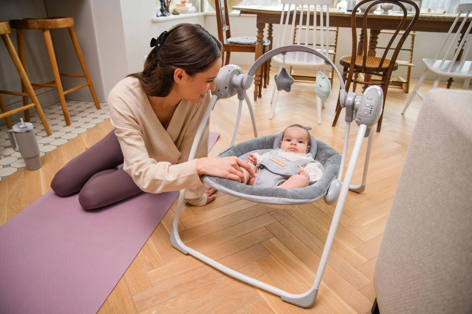Uživajte u trenutku mira dok vaša beba odmara u udobnosti ležaljke za ljuljanje MOMI Liss. Zahvaljujući električnom pogonu i pet razina ljuljanja lako ćete prilagoditi ritam trenutnom raspoloženju bebe. Timer omogućuje automatsko isključivanje nakon 10, 15 ili 30 minuta, a 6 ugodnih melodija pruža nježnu zvučnu smirenost.