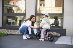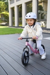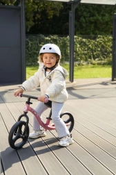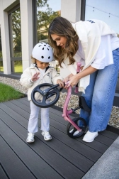 Visinu sjedala i upravljača podesit ćete bez alata u nekoliko sekundi, pa guralica lako raste s djetetom. Kotači od elastične termoplastične gume TPR prigušuju vibracije i osiguravaju tihu, udobnu vožnju na pločniku i u dvorištu. Izostanak brave upravljanja poboljšava upravljivost, a pri padu se upravljač preklopi, što povećava sigurnost.