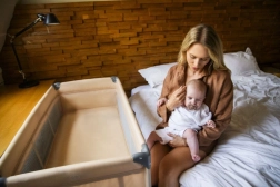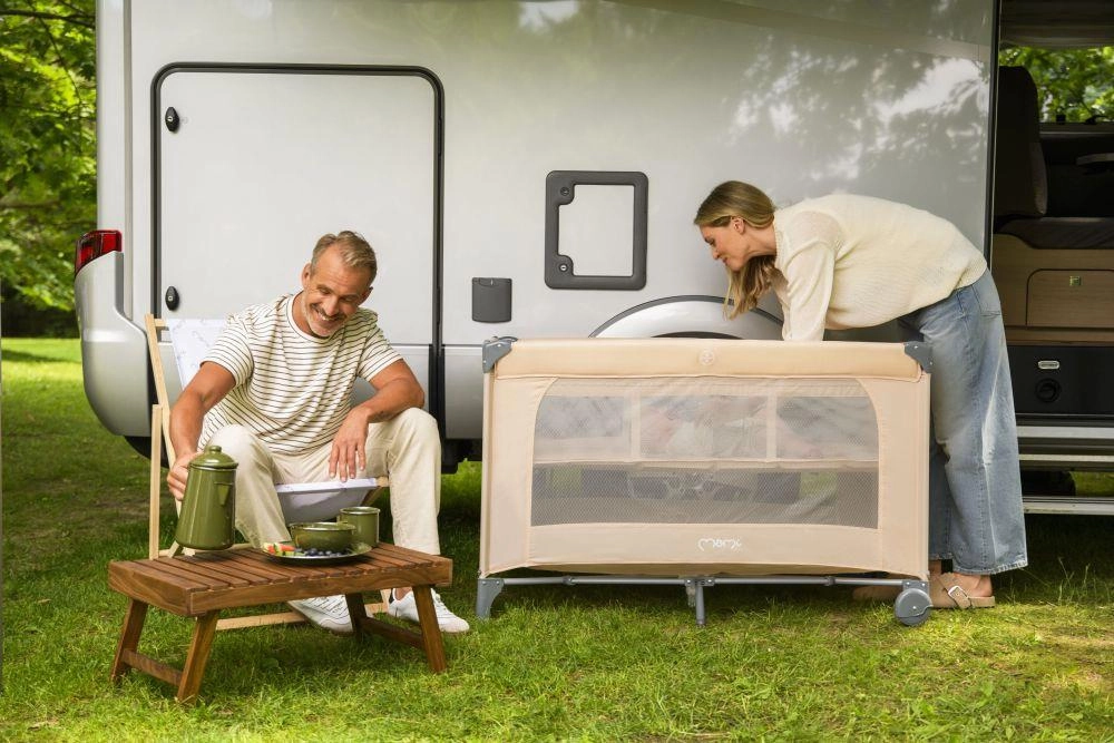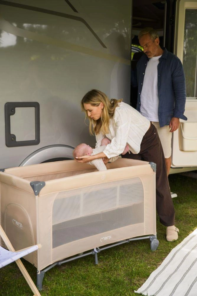 Sustav brzog rasklapanja/sklapanja i priložena torba omogućuju udoban transport krevetića bez napora – idealno za odmor i posjete.