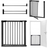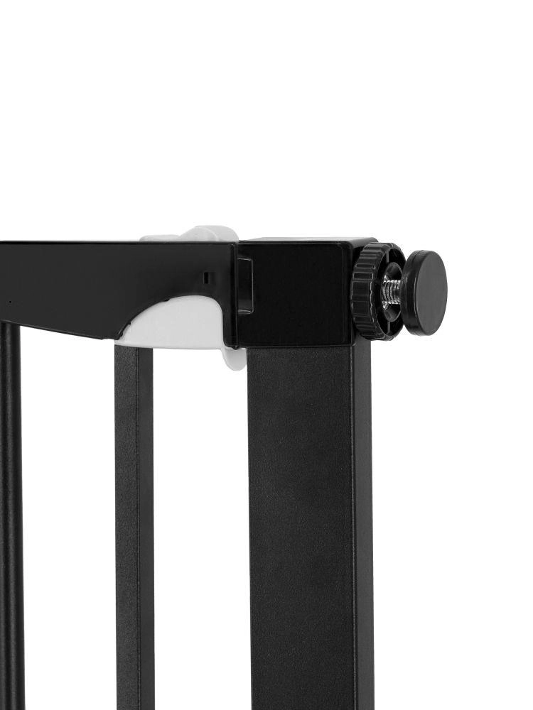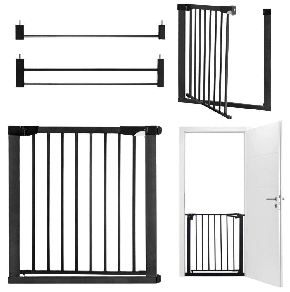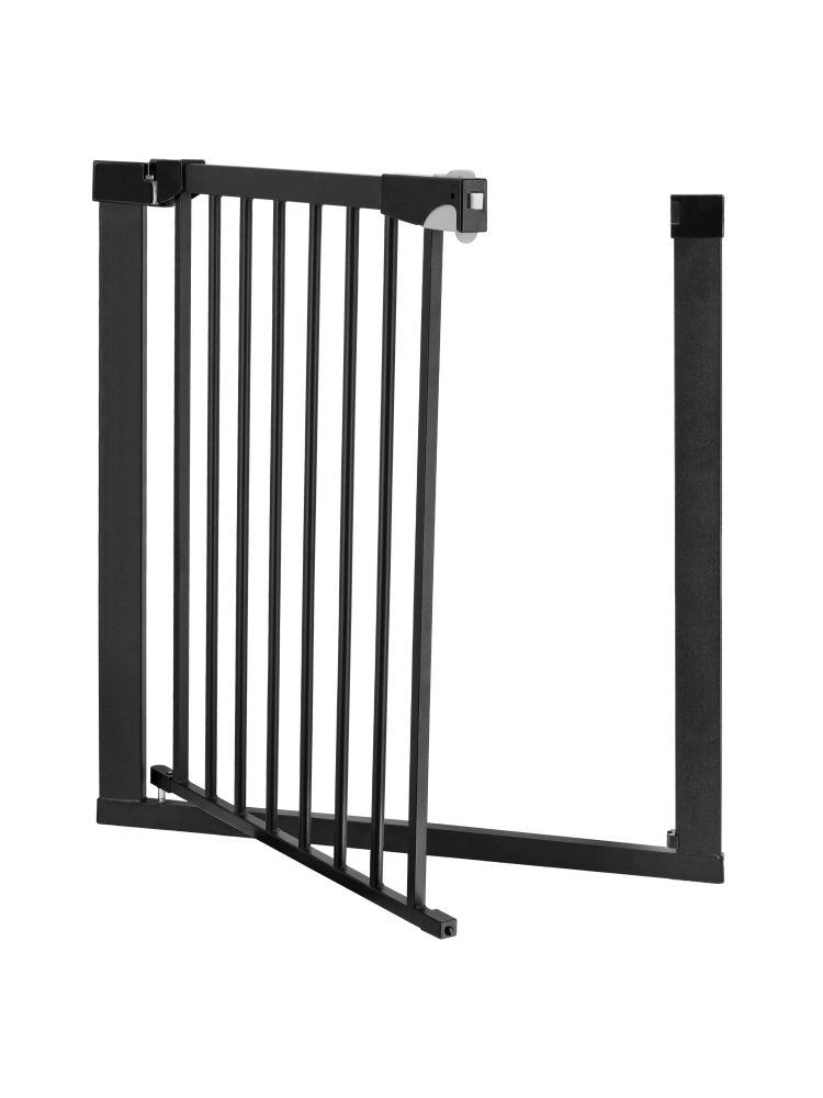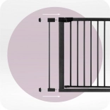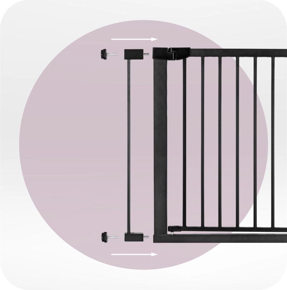Osnovna širina 75–82 cm te priloženi nastavci 7 cm i 14 cm omogućuju proširenje do 103 cm. Barijera se otvara u oba smjera, ima praktičnu blokadu i pri otvaranju na 90° ostaje širom otvorena za udoban prolaz. Dvostruki sustav zaključavanja onemogućuje djeci samostalno otvaranje barijere.