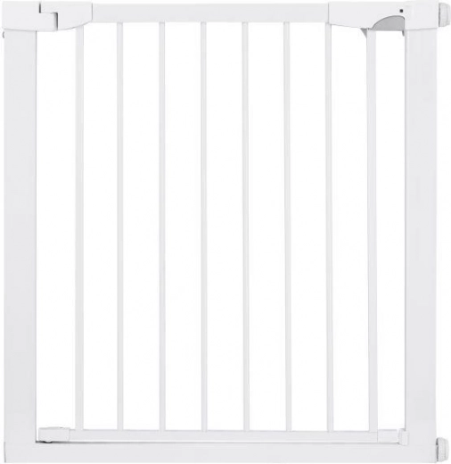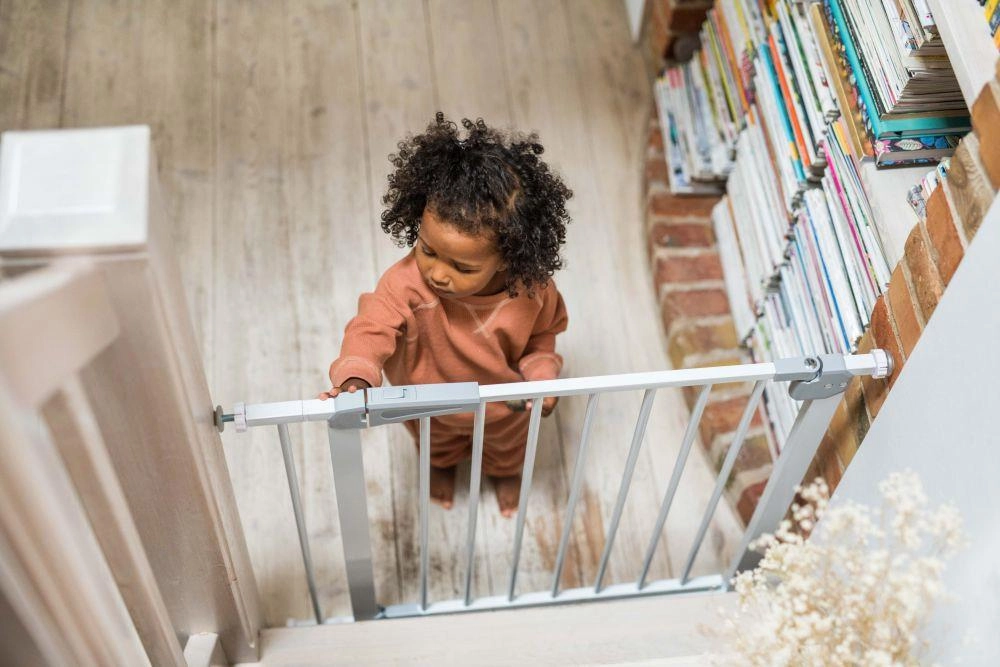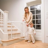 Za maksimalan mir barijera ispunjava europsku normu EN 1930 i zahtjeve EN71-2 i EN71-3. Pri otvaranju na 90° vrata ostaju otvorena, što olakšava nošenje kupovine ili manevriranje kolicima. Glatke linije bez oštrih rubova i izdržljiva konstrukcija uklapaju se u moderne interijere i uz stubište.