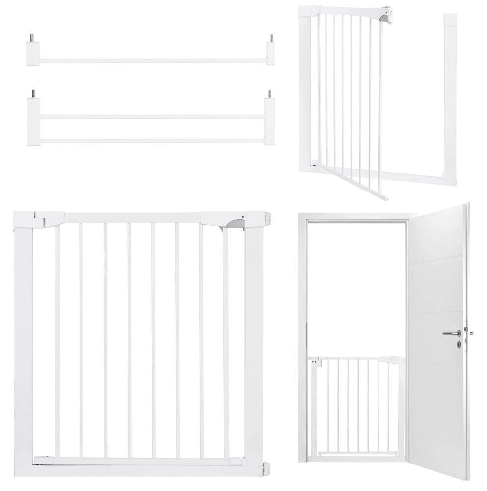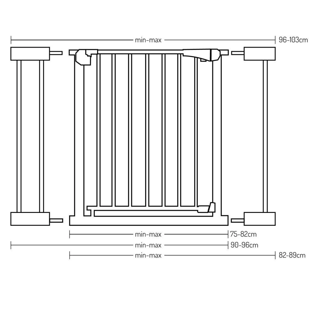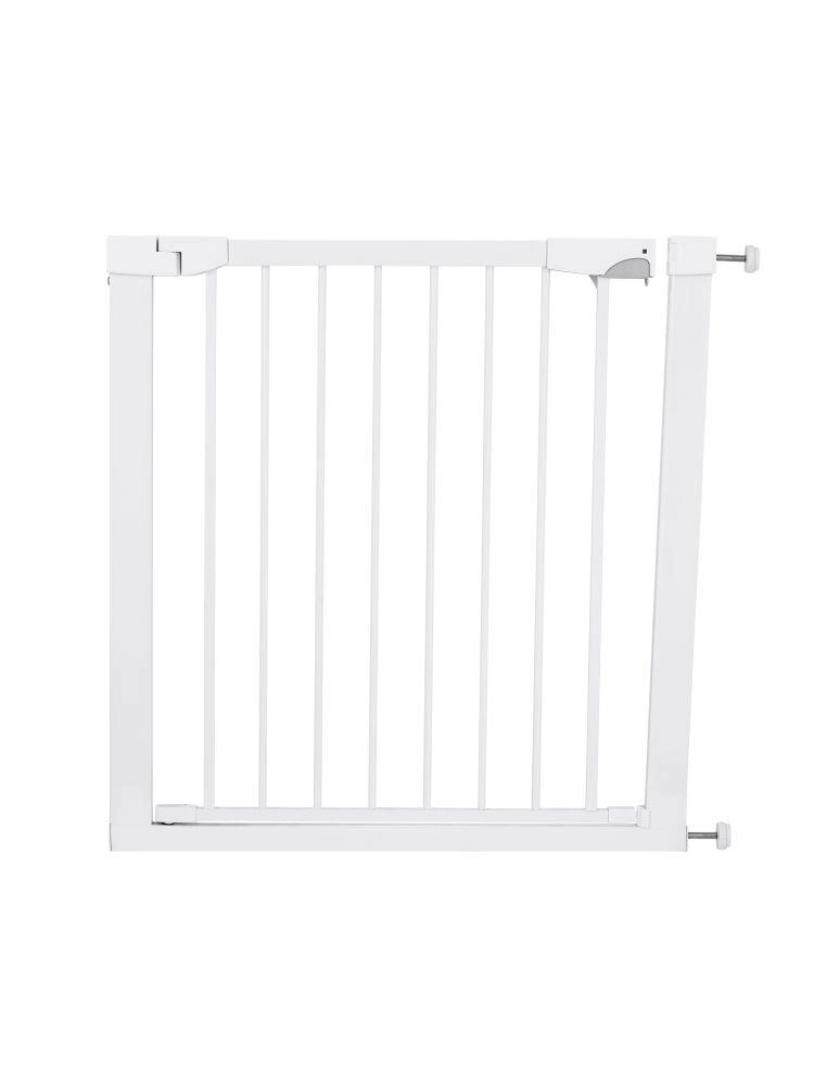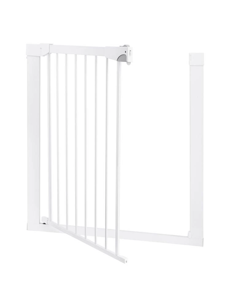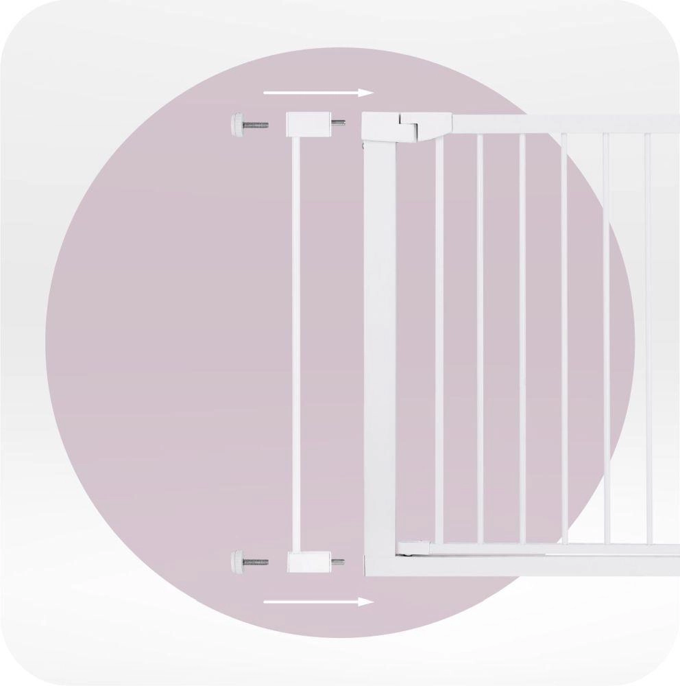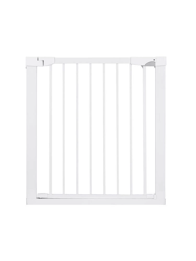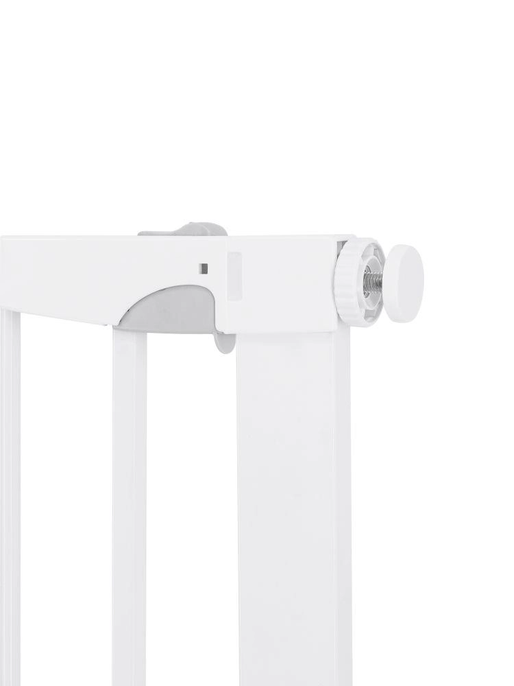 MoMi PAXI Plus je čvrsta metalna barijera u elegantnoj bijeloj boji, dizajnirana za brzu instalaciju bez alata. Zahvaljujući osnovnoj širini 75–82 cm i dvama nastavcima (7 cm i 14 cm), sigurno zatvara prolaze do 103 cm. Dvosmjerno otvaranje i pametna brava povećavaju udobnost i sigurnost u svakodnevnom kućanstvu.