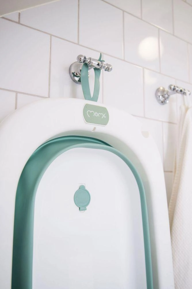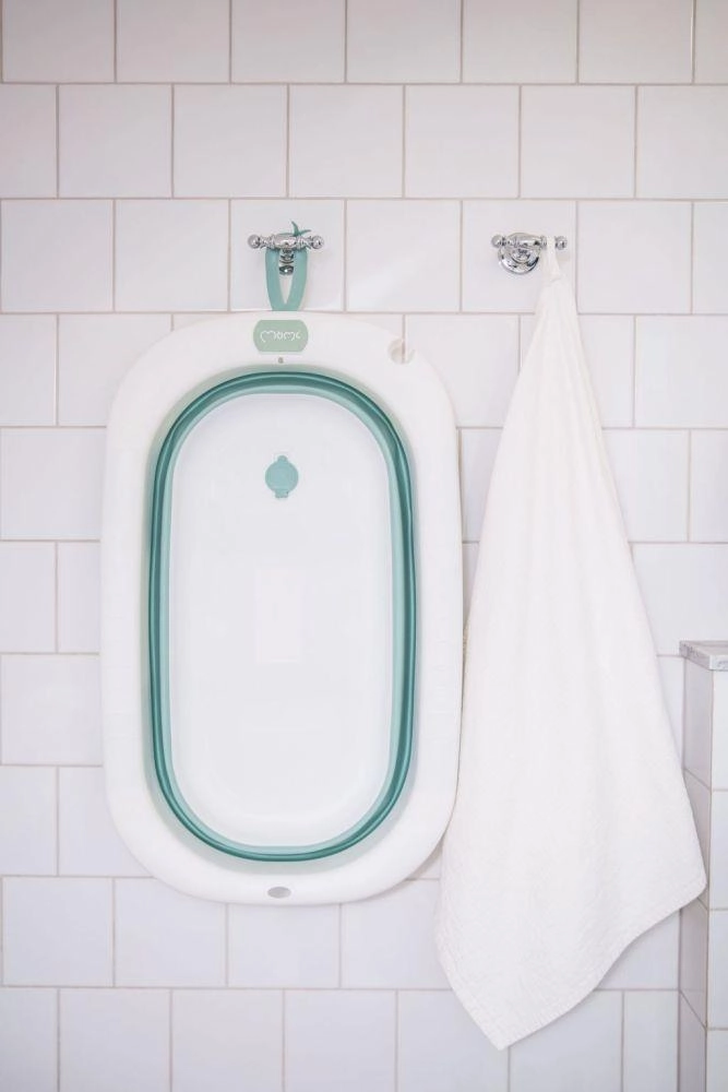 Praktična sklopiva kadica za bebe MoMi NATA u zelenoj boji nudi stabilno i sigurno kupanje od rođenja. Zahvaljujući brzom sklapanju štedi prostor, ima protuklizne nožice, čep za ispuštanje koji dobro brtvi i ušicu za vješanje – idealna za male kupaonice.