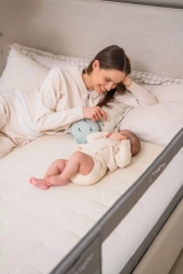 Ograda MoMi LEXI XL PLUS pouzdan je pomagač za roditelje i djecu – prikladna je za zajedničko spavanje kod roditelja i za samostalan dječji krevet. Konstrukcija s mekom podstavom i velikim panelom od prozračne mrežice osigurava sigurnost i ujedno odličan pregled nad djetetom. Mehanizam sigurnosne blokade sprječava neželjeno sklapanje tijekom sna.