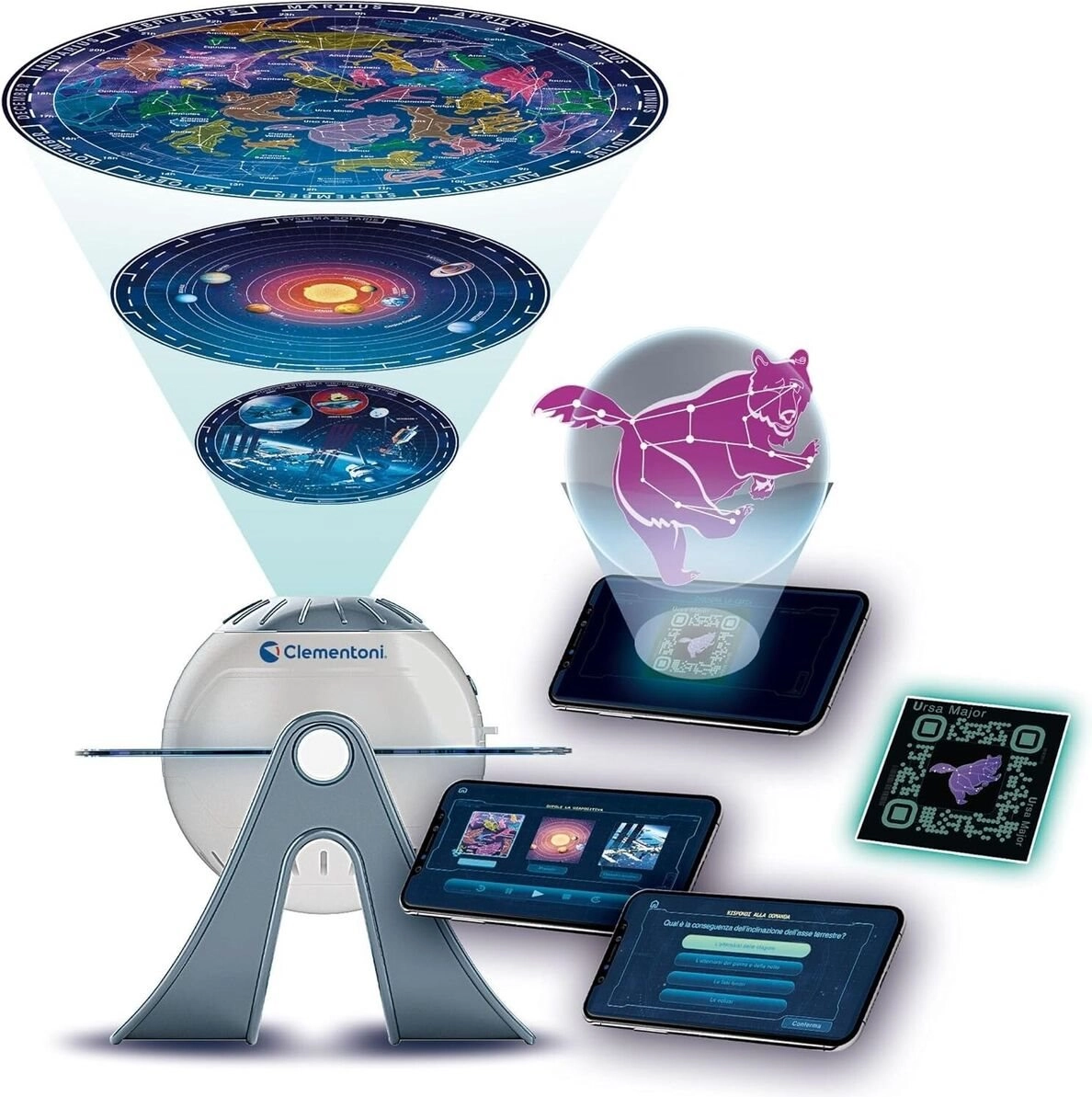 Otkrijte svemir iz udobnosti dječje sobe s interaktivnim projektorom planetarijem CLEMENTONI Science & Play. Ovaj pametni projektor projicira zvijezde, zviježđa i planete izravno na zid te pretvara večeri u zabavno učenje astronomije. Zahvaljujući izmjenjivim dijapozitivima i pratećoj aplikaciji s AR sadržajem, kvizovima i pričama idealan je za znatiželjnu djecu od 8 godina naviše.