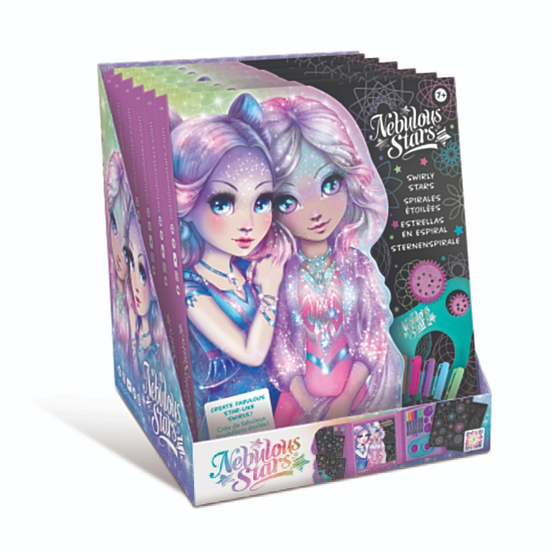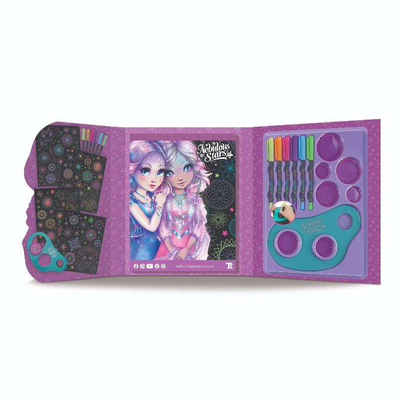 Otkrijte čaroliju crtanja sa setom Nebulous Stars za izradu zvjezdanih spirala. Set uključuje 48 crnih stranica, spiralni šablon sa 7 kotačića, 6 neonskih gel olovaka i naljepnice za beskrajnu dozu kreativne zabave. Na 36 ilustriranih stranica možete bojati i dopunjavati sjajne spirale – idealno za razvoj kreativnosti i fine motorike.