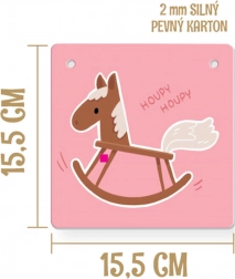 Svaka kartica ima dimenzije 15,5 × 15,5 cm i izrađena je od 2 mm FSC kartona bez plastike – zahvaljujući tome kartice su čvrste, sigurne i izdržljive za svakodnevnu uporabu. Set sadrži 12 dvoslojnih kartica (ukupno 24 motiva: 12 životinja + 12 predmeta), uključujući savjete za roditelje s idejama za igre i razvojne aktivnosti.