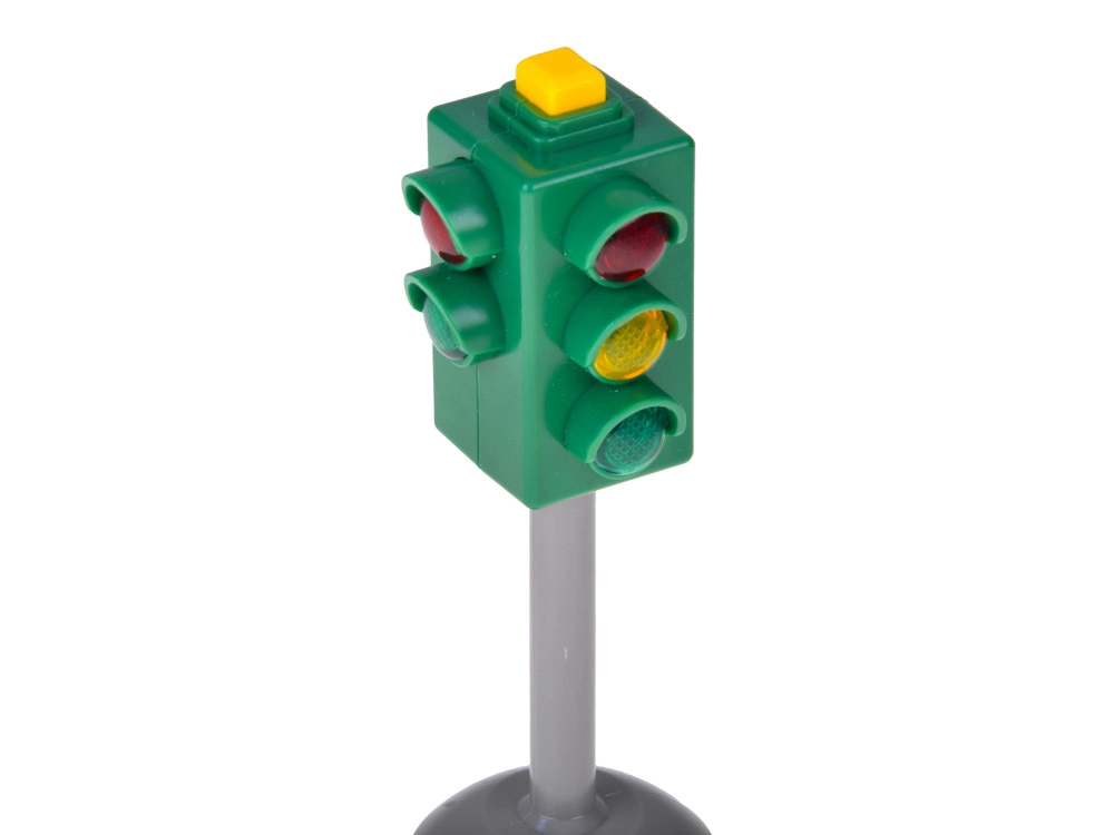 Semafor s tri boje svjetla (crvena, žuta, zelena) i zvukom simulira stvarni promet. Odlično za učenje sigurnog prelaska i vožnje.