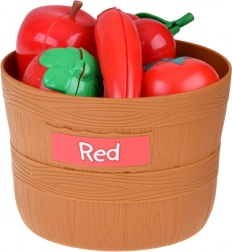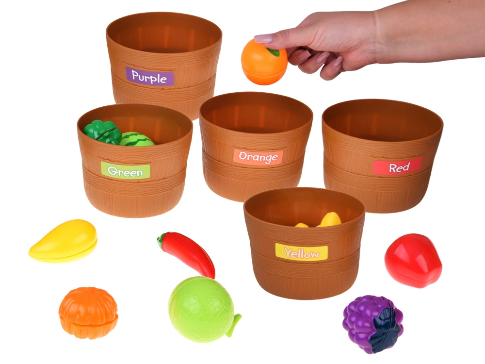 Pet košara s kolor oznakama motivira djecu da razvrstavaju namirnice prema boji. Odlična osnova za rano opažanje i razvoj logike.