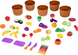 Dvije daske, dva noža i mnogo voća i povrća u raznim bojama potiču maštu te igru kuhanja, trgovine ili restorana.