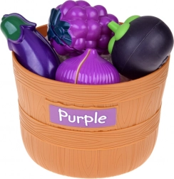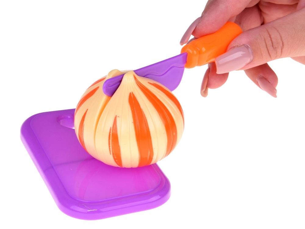 Zabavan i edukativan set za male kuhare: plastično voće i povrće na čičak, šarene košare i pribor za razvrstavanje. Podržava razvoj fine motorike, učenje boja i prepoznavanje vrsta voća i povrća. Sigurno “rezanje” na daski s noževima donosi realističnu igru kuhanja i puno zabave.