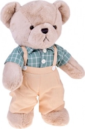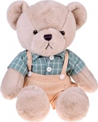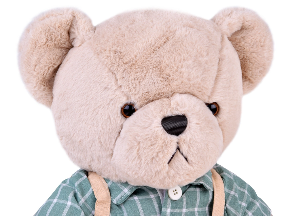 Slatki plišani medo Franek je veliki 58 cm pratitelj za maženje u elegantnom vintage stilu. Ima mekano bež krzno, nosi zelenu kariranu košulju i bež tregeri sa kratkim hlačama. Odjeću je moguće lako skinuti zahvaljujući čičak-traci, pa se medo jednostavno održava čistim. Idealan kao poklon za djecu i odrasle te prekrasna dekoracija dječje sobe.