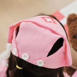 Dio kompleta je usklađena ružičasta kapa s izraženim križem koja naglašava ulogu male medicinske sestre.