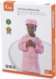 Ispunite dječje snove o brizi za pacijente ružičastim kostimom male medicinske sestre brenda VIGA. Zahvaljujući udobnom kaputiću s džepom i kapi s križem spreman je za igre uloga, potiče empatiju, komunikaciju i finu motoriku. Jednostavno kopčanje na drukere i izdržljiva tkanina osiguravaju lako presvlačenje i dugotrajnu igru.