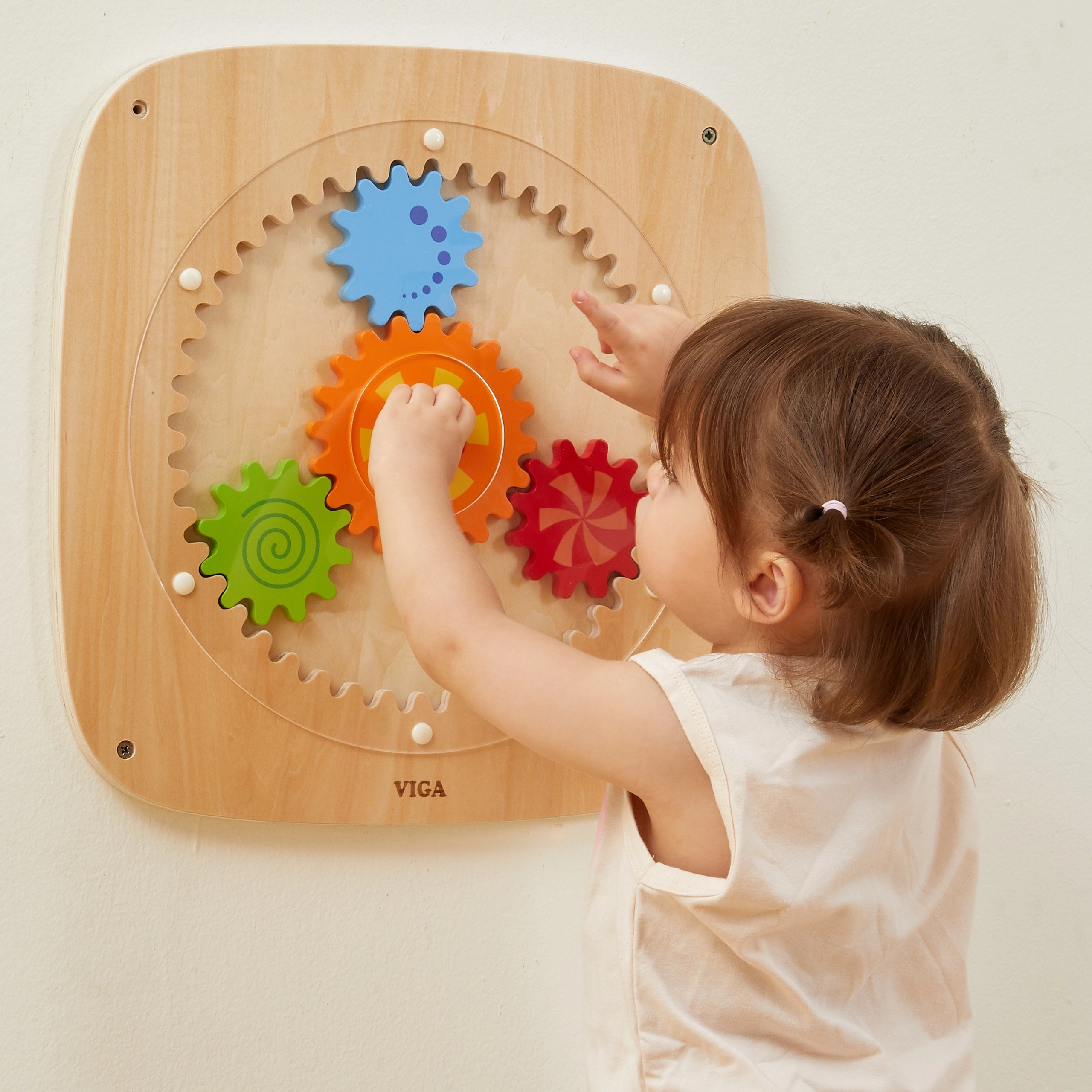 Otkrijte zabavnu edukativnu igračku koja razvija finu motoriku, logičko razmišljanje i razumijevanje uzroka i posljedice. Zidna ploča sa zupčanicima VIGA omogućuje glatko okretanje svih kotačića istovremeno i stvara privlačne vizualne efekte. Izdržljiva drvena izvedba idealna je za dječju sobu, vrtić i igraonicu.