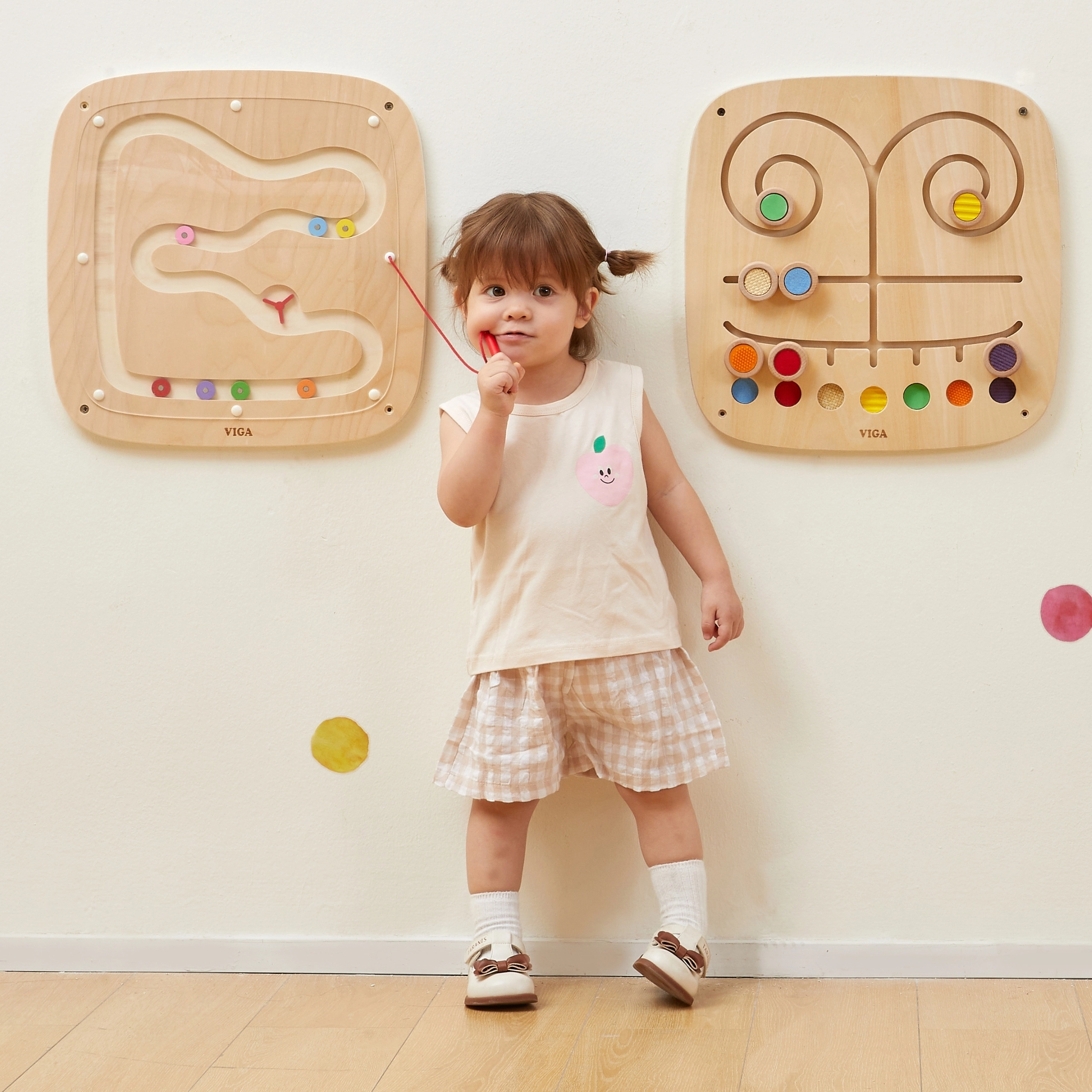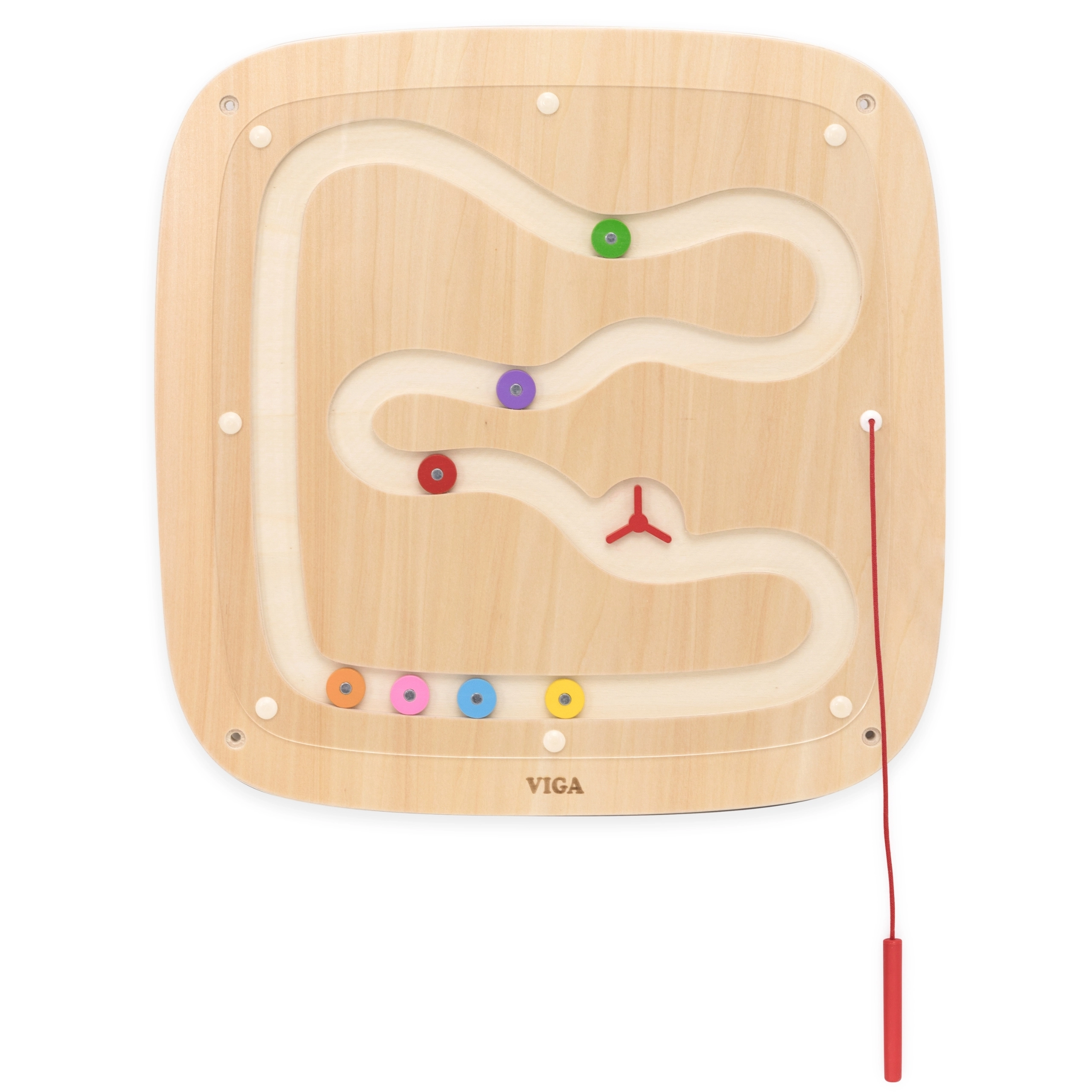 Otkrijte čaroliju gravitacije s ovom interaktivnom drvenom pločom VIGA! Uz pomoć privezanog magnetskog pera djeca pomiču šarene diskove po dvjema različitim stazama i prate kako se mijenjaju brzina i smjer. Ploča je izdržljiva, sigurna i montira se na zid, pa štedi prostor i istodobno razvija finu motoriku, koordinaciju oko–ruka i logičko razmišljanje.
