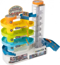 Ova šarena parkirna garaža djeci donosi dinamičnu igru s autićima – podignite ih pomoću ručne ili električne kontrole dizala na gornje katove i promatrajte kako se po spiralnim stazama brzo vraćaju dolje. Zahvaljujući pet razina ima mnogo prostora za vožnju, parkiranje i stvaranje vlastitih prometnih situacija.
