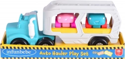 Zabavan set za male vozače – vučni kamion s dva autića, duljine 24 cm. Nudi slobodno okretajuće kotače za glatku vožnju i lako rukovanje, idealno za igru u kući i na otvorenom.