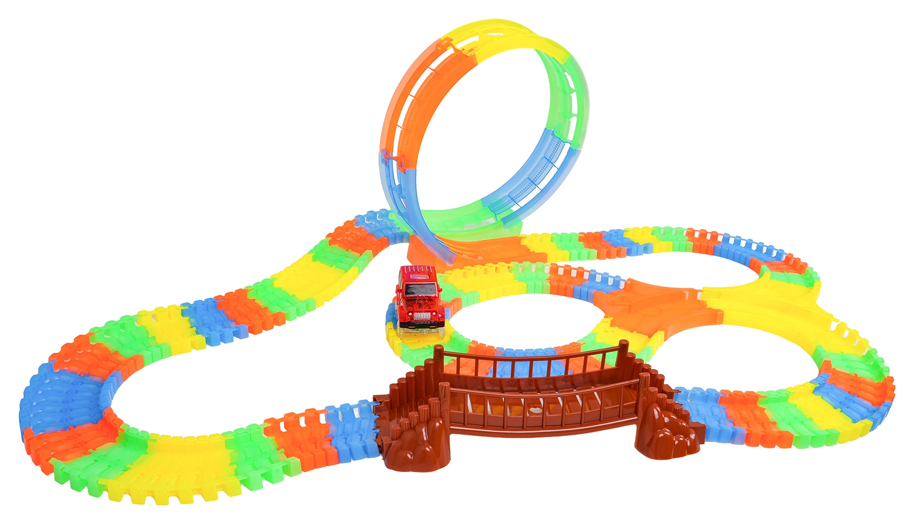 Savitljivi segmenti jednostavno se spoje, saviju, podignu i preurede – stvorite mostove, zavoje i okomitu petlju točno prema mašti.
