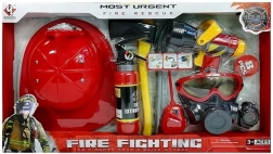 U pakiranju ćete pronaći kacigu, masku, nastavak za crijevo, sjekiricu, pajser, ručni aparat za gašenje, kratkovalni voki-toki i sat. Set dolazi u poklon pakiranju s prozorčićem, pa je izvrstan prijedlog za dar za male ljubitelje vatrogasaca.