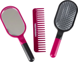 U setu se nalaze i češljevi, četka, zrcalce, sigurnosne škare, vikleri, kopče i drugi dodaci za igru frizerskog salona. Laka konstrukcija, moderne boje i izdržljivi materijali osiguravaju dug vijek trajanja i ugodno korištenje.