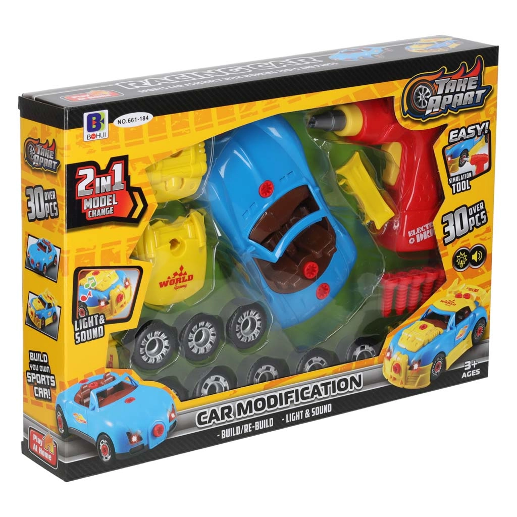 Konstrukcijski set šarenog sportskog automobila donosi djeci zabavu na duge sate. Zahvaljujući priloženom baterijskom odvijaču male ruke mogu auto rastavljati i ponovno sastavljati, mijenjati panele karoserije i kotače te otkrivati kako stvari funkcioniraju. Nakon sastavljanja auto oduševljava svjetlećim svjetlima i zvukovima motora, koji pojačavaju realističan doživljaj igre.