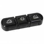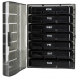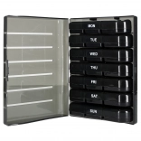 Moderni organizator za lijekove pomaže u svakodnevnom planiranju uzimanja tableta i dodataka. Set se sastoji od 7 zasebnih dnevnih kaseta označenih danima u tjednu (na engleskom) i ikonama doba dana. Svaka kaseta ima zatvorive pretince koji sprječavaju prosipanje i prodor vlage.