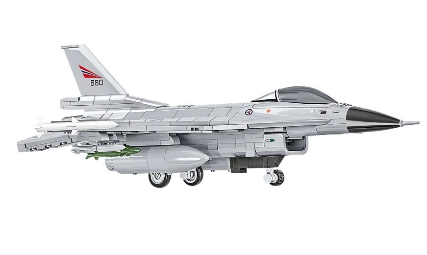Uživajte u preciznoj gradnji i sjajnom prikazu s detaljnim modelom F-16AM Fighting Falcon u norveškoj varijanti. Zahvaljujući službenoj licenci Lockheed Martin možete se osloniti na vjerne proporcije, karakteristične oblike i detalje potiska. Model impresionira i realističnim naoružanjem te funkcionalnim elementima za igru i izlaganje.
