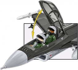 Dio paketa su dvije minifigurice u letačkim kombinezonima s kacigama i kisikovim maskama, precizno izrađene rakete AIM-120 AMRAAM i AIM-9 Sidewinder te stabilan stalak s nazivom modela i mjerilom. Jasan, korak‑po‑korak priručnik razveselit će i mlađe graditelje i iskusne modelare.