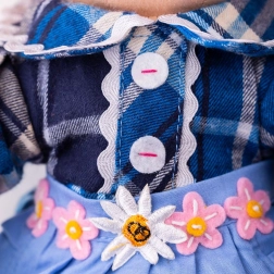 Njezina je odjeća elegantnih boja, a zahvaljujući dostupnosti dodatne odjeće odgovarajuće veličine, njezin se ormar može stalno mijenjati i prilagođavati.