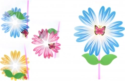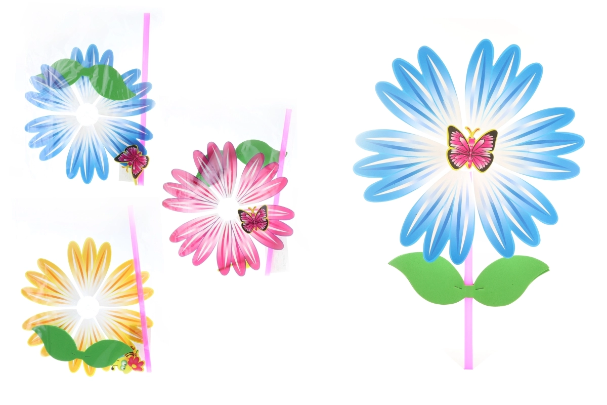 Šarena vjetrenjača u obliku cvijeta donosi djeci puno radosti pri svakom povjetarcu. Zahvaljujući plastičnoj šipki lako se drži, lagana konstrukcija omogućuje jednostavno okretanje, a veće dimenzije privlače pažnju na prvi pogled. Idealno za vrt, uz vodu i za šetnje. Prikladno za djecu od 3 godine.