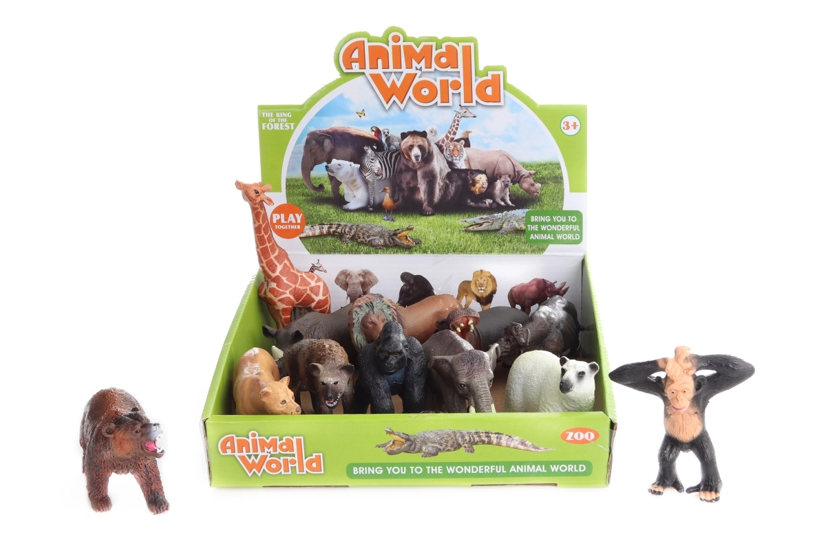 Ovaj bogat set donosi 12 različitih životinja: slon, bizon, polarni medvjed, hijena, gorila, čimpanza, nilski konj, smeđi medvjed, lav, lavica, nosorog i žirafa. Svaka figurica je veličine približno 9–12 cm i nudi uspjele detalje koji potiču maštu i prirodnu znatiželju djece.