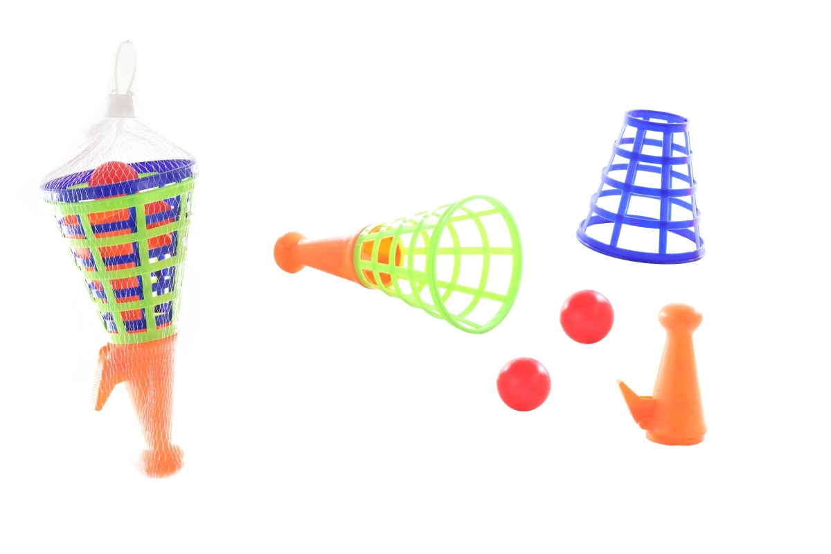 Otkrijte sjajnu obiteljsku zabavu s plastičnim izbacivačkim košaricama. Zahvaljujući jednostavnom pritisku na okidač loptica izleti, a drugi igrač je hvata u košaricu. Lagani i izdržljivi materijal siguran je za djecu te prikladan za igru u interijeru i eksterijeru.