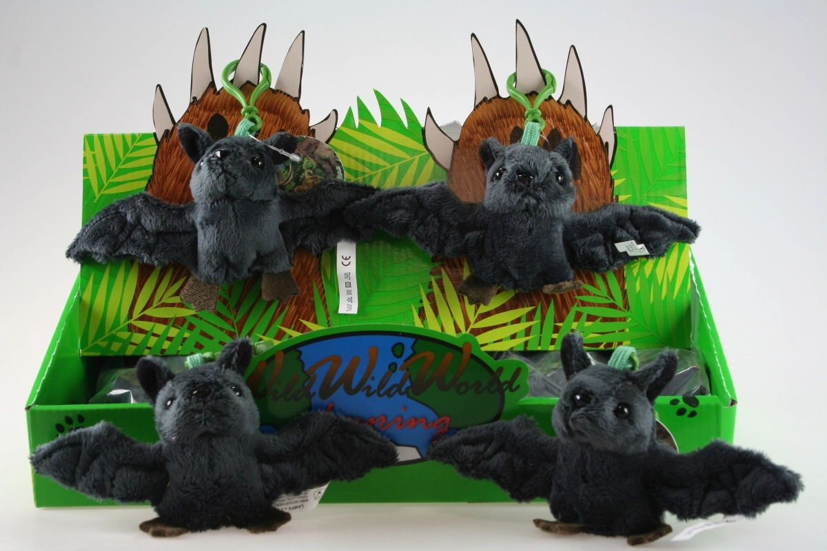 Preslatki privjesak s plišanim šišmišem razveselit će i djecu i odrasle. Zahvaljujući rasponu krila od oko 18 cm odlično se ističe na ruksaku, torbi ili ključevima. Prikladno od 3 godine.