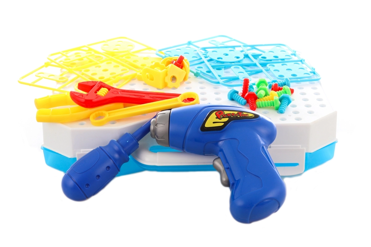 Ovaj svestrani set nudi bogat izbor dijelova i alata uz koje će djeca provesti sate smislenog igranja. Funkcionalna dječja bušilica na baterije olakšava uvrtanje vijaka i djeci na siguran način približava svijet stvarnih alata. Sve je pohranjeno u čvrstom plastičnom kovčegu koji olakšava prenošenje i spremanje.