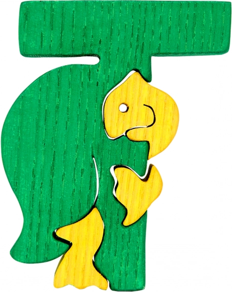 Dječje umetaljko slovo T s motivom male kornjače idealno je pomagalo za prvi susret s abecedom. Dijelovi glatko prianjaju jedni uz druge, a zahvaljujući robusnoj izradi od masivnog drva pogodni su za svakodnevnu igru. Površina je obrađena bojama sigurnima za djecu.