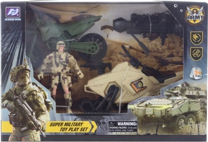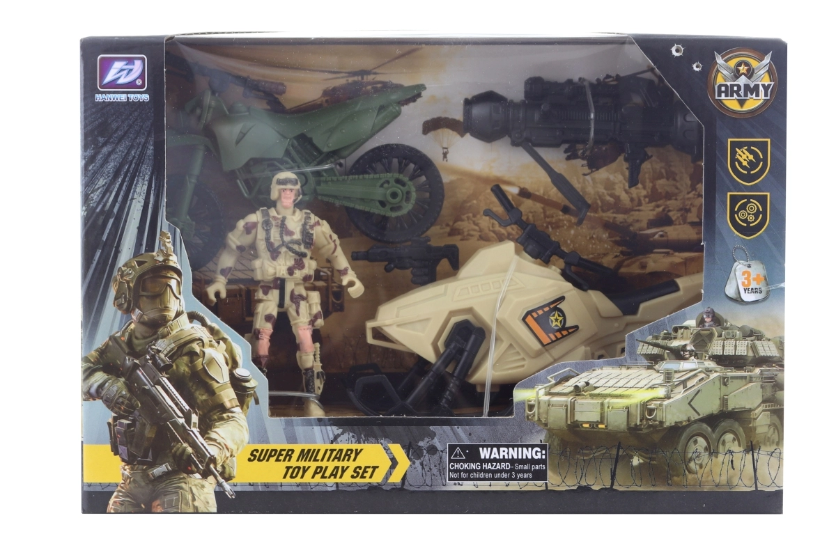 Ovaj vojni plastični set sa skuterom donosi djeci puno akcijske zabave. Zahvaljujući čvrstom materijalu idealan je za svakodnevnu igru te potiče razvoj mašte i motoričkih vještina. Praktično pakiranje u kutiji čini ga izvrsnim poklonom.