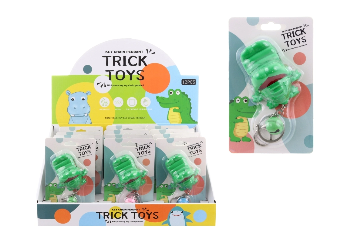 Slatki plastični privjesak u obliku krokodila s nježno zvonećim zvončićem razveselit će djecu i odrasle. Odlično pristaje na ključeve, ruksak ili pernicu, a zahvaljujući kompaktnim dimenzijama uvijek je pri ruci. Lagan, izdržljiv i zabavan dodatak za svakodnevno nošenje.