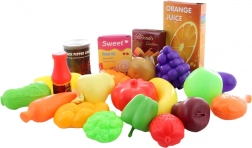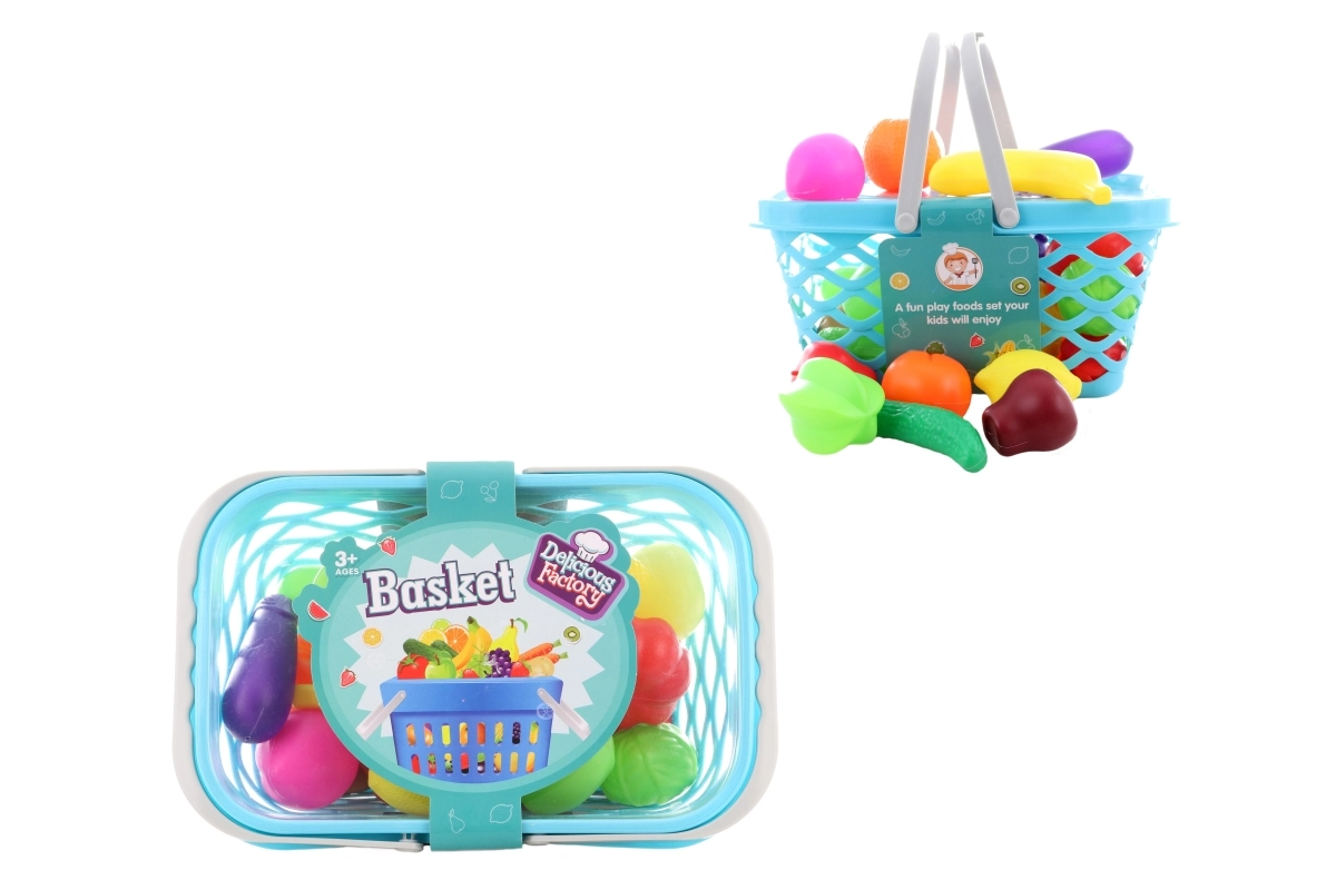 Ovaj bogat set dječje košarice za kupovinu donosi realistčnu zabavu u svaku dječju kuhinju. Lagana plastika i jarke boje mame na istraživanje, razvrstavanje i zajedničku igru. U pakiranju se nalaze košarica i 25 dijelova voća i povrća koji potiču maštu i učenje kroz igru trgovine i kuhanja.