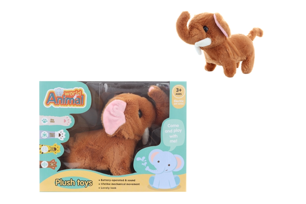 Ovaj interaktivni slon na baterije idealna je igračka za djecu koja vole životinje. Nakon uključivanja se prošeće i trubi kao pravi slon, čime potiče dječju maštu i osjetilnu percepciju. Zahvaljujući kompaktnim dimenzijama lako se prenosi i stane i na manju dječju policu.