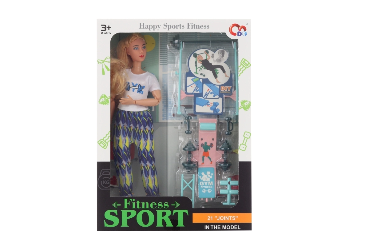 Otkrijte zabavu i pokret s ovom zglobnom lutkom i bogatim setom fitness dodataka. Lutka ima pokretnu glavu, ruke i noge, pa može zauzeti mnoge realistične poze tijekom vježbanja. Dio seta su klupa za vježbanje i 5 utega različitih veličina. Idealna kreativna igra za djecu od 3 godine.