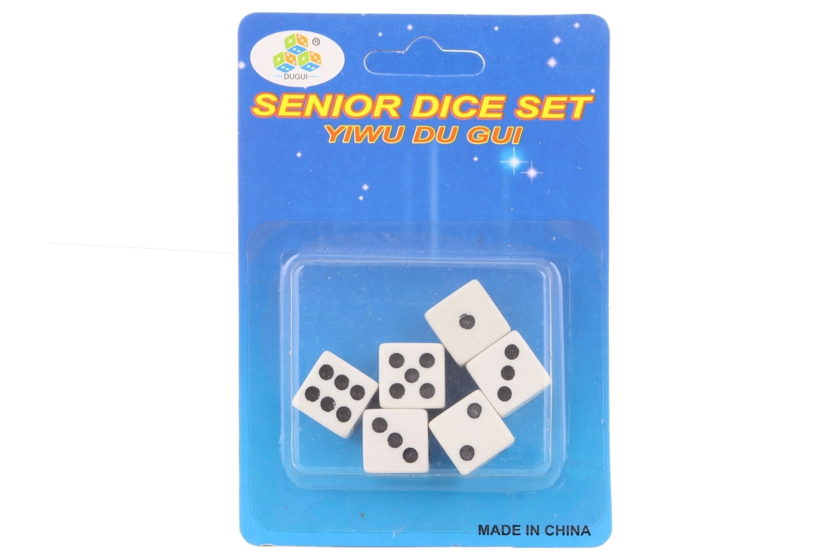 Praktični set igraćih kockica u blister pakiranju sadrži 6 plastičnih kockica veličine oko 1,5 cm. Kompaktno pakiranje (oko 9 × 12,5 cm) idealno je za putovanja, kućne igraće setove i kao zamjenske kockice.