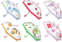 Stilizan prozirni kišobran sa životinjama idealan je za kišne dane. Zahvaljujući automatskom mehanizmu otvorit ćete ga jednim pritiskom, a prozirna površina osigurat će dobar pregled i pri jakoj kiši. Veseli motivi posebno će razveseliti djecu i uljepšati svaki put do škole ili na izlet.
