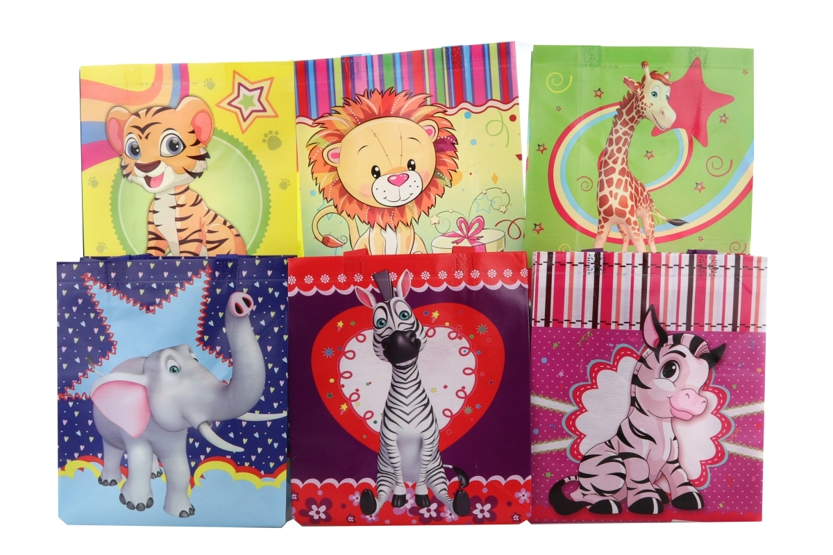 Stilna poklon-vrećica sa životinjskim motivom, idealna za manje darove i proslave. Nudi čvrstu izradu, praktične dimenzije cca 26,5 × 29,5 cm i svestranu upotrebu za svaku priliku.